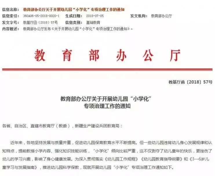 《通知》明确,教育部要求幼儿园坚决纠正“小学化”倾向,严禁教授小学课程内容。