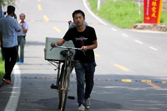 近日,河南三门峡豫西大峡谷景区内一名推着二八自行车叫卖冰棍的小伙子吸引了不少游客的注意。