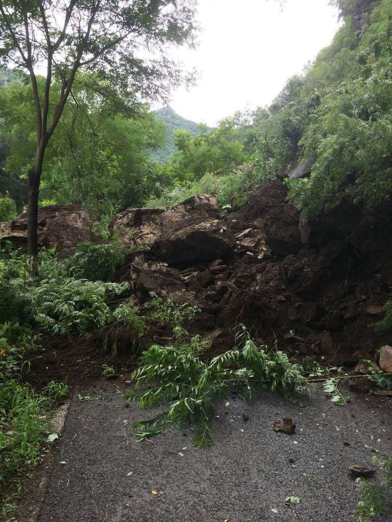 怀柔白河里湾狼虎哨村,发生崩塌近千立方米