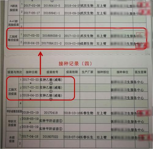 山东疾控介绍,按照原国家卫生计生委《预防接种工作规范(2016年版)》的要求,山东省预防接种证自2017年起,每次接种后要注明疫苗名称、接种日期、生产厂家、疫苗批号、有效期、接种单位和接种人员等8项内容,对于可以互相替代的疫苗,除在实际接种疫苗处注明上述8项内容外,还需在被替代疫苗处注明实际接种疫苗的接种日期,并加注“*”号标识,标明实际接种疫苗名称,以告知家长该疫苗已完成接种,使用的是同效的替代疫苗。潍坊、济宁两名儿童接种的疫苗即为此种情况。