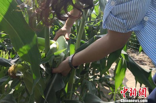 7月28日,“2018甘肃榆中农民丰收季暨第七届水果玉米迷宫嘉年华”活动启动。图为游客体验掰玉米。 杜萍 摄
