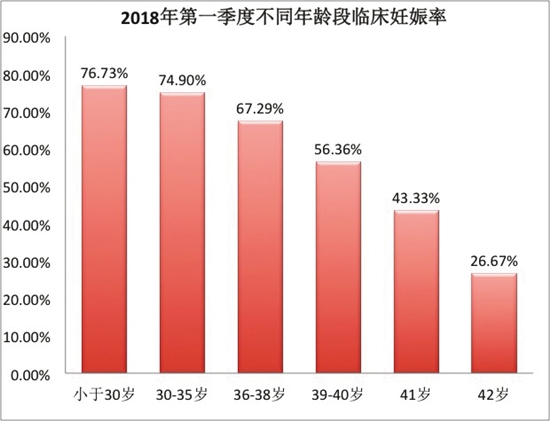 2018年第一季度的临床妊娠数据更是振奋人心,在36-38岁组,妊娠率达到67%,39-40岁组达到56%,41岁组也达到了43%。