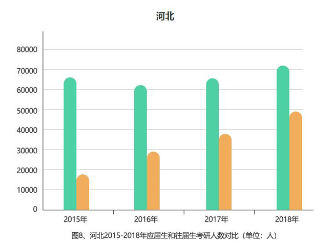 由河北及湖北两省的数据图可以看出,往届生考研的比例逐渐扩大成为一种趋势。考研学生主要分为应届毕业生和往届毕业生两类,很多毕业生往往还会加入到第二次考研甚至多次考研的行列。2017年在职研究生纳入统考之后,考取双证不必脱产学习,能够满足既能赚钱养家又不耽误提升学历的需求,在政策的影响下,在职考生的积极性自然随之高涨。