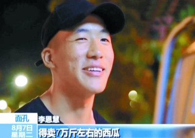 李恩慧,今年18岁,还有一个月时间,他就要上大学了。可是由于家境贫寒,为了给自己凑够一万四千元的学费,李恩慧这个暑假要卖掉7万斤左右的西瓜,他也因此被人们称为“西瓜男孩”。