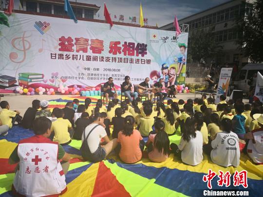 中新网甘肃白银8月9日电 (记者 崔琳)“这是一个因甘肃乡村儿童阅读资源普遍匮乏而发起的公益项目,我们将从一本书开始,给予乡村孩童更多的帮助……”8日,甘肃省红十字会联合兰州本土知名乐队——低苦艾乐队走进白银市白银区金山中心小学,为100名乡村孩子送去100个“益乐阅读包”,为他们点亮阅读梦想。