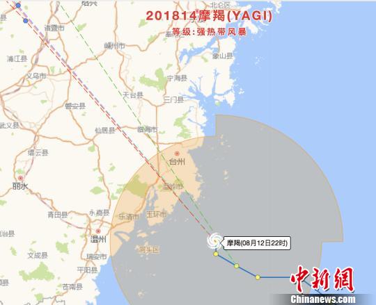 中新网杭州8月12日电(张斌)12日晚,记者从浙江省台州市防指办获悉,今日20时,“摩羯”中心位于温岭石塘东南方向约70公里的海面上,预计“摩羯”将以每小时35公里左右的速度向西北方向移动,于今天23时左右在台州沿海登陆。