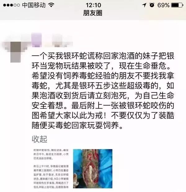 7月9日,陕西渭南21岁女孩琪琪网购银环蛇泡酒,但亲友透露其实是当宠物,结果被咬伤,送往医院后被通知脑死亡。
