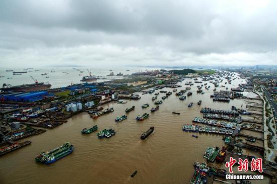 资料图:渔船在港口内停泊避台风。中新社发 姚峰 摄