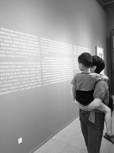 李先生带着4岁的女儿前来看展,他会仔细地阅读展品下面的说明标签,然后给女儿耐心地讲解。“这个是陶井,是墓地中随葬的。那个是五齿耙,古代的农具。”李先生边讲着,边蹲下来用手比划,然而小女儿似乎对李先生讲的内容不感兴趣,神情迷茫地张望着展厅各处。