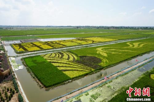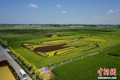 中新网宁夏银川8月15日电(姜雨薇) 当不同颜色、形态各异的水稻组成不同的文字图案,构成了美丽乡村的一道道靓丽风景线,为美丽乡村旅游添了把火。宁夏稻渔空间生态休闲观光园“农业+旅游”的创意功能不仅壮大了乡村旅游,还发展了企业经济,让村民从发展中受益。