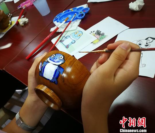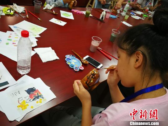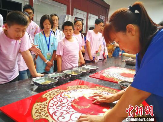“亲情中华”夏令营山西太原营营员正在参观了解平遥推光漆器制作工艺。 杨杰英 摄