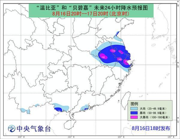 今明天登陆前后,苏浙沪等地将掀狂风暴雨。预计,16日20时至17日20时,东海北部和黄海西南部的部分海域、江苏东南部沿海、长江口区、上海沿海、杭州湾、浙江东北部沿海将有8-9级大风,“温比亚”中心经过的附近海域或地区风力可达10级,阵风11-12级。江苏大部、浙江中北部、上海、安徽大部、河南东南部、湖北北部等地有大到暴雨,其中浙江北部、江苏南部、上海南部、安徽东部和大别山区局部地区有大暴雨(100~180毫米)。松散的结构会使它带来的降雨也相对分散,可能出现外围降水强于中心附近的情况,由于结构不对称,台风北侧风雨较大。