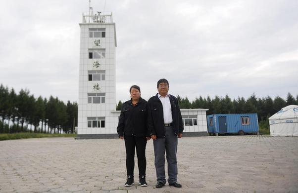 塞罕坝机械林场,碧空如洗,层林如海。在海拔1900多米的塞罕坝最高点上,矗立着刘军、齐淑艳夫妇的“望海楼”。白天每隔15分钟、晚上每隔1小时,登楼顶,用一个老旧的奥林巴斯望远镜眺望周围方圆20公里的火情,并加以记录。日复一日,年复一年,夫妻二人已在此守望十余年。