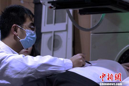 而在“中国医师节”来临之际,从事放疗工作十几年的放疗一病区副主任医师贺文财,赤裸上身,在同事帮助下,人生第一次体验癌症患者放疗时的直线加速器治疗。