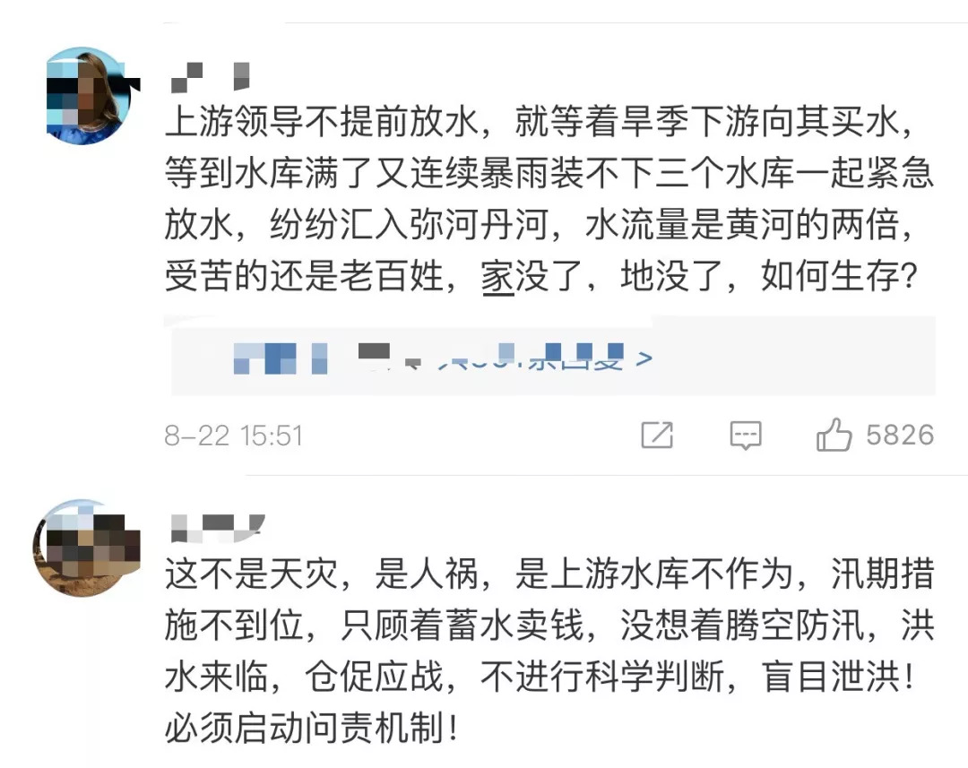 22日,冶源水库工作人员在接受采访时称,如果不泄洪“后果更严重”。