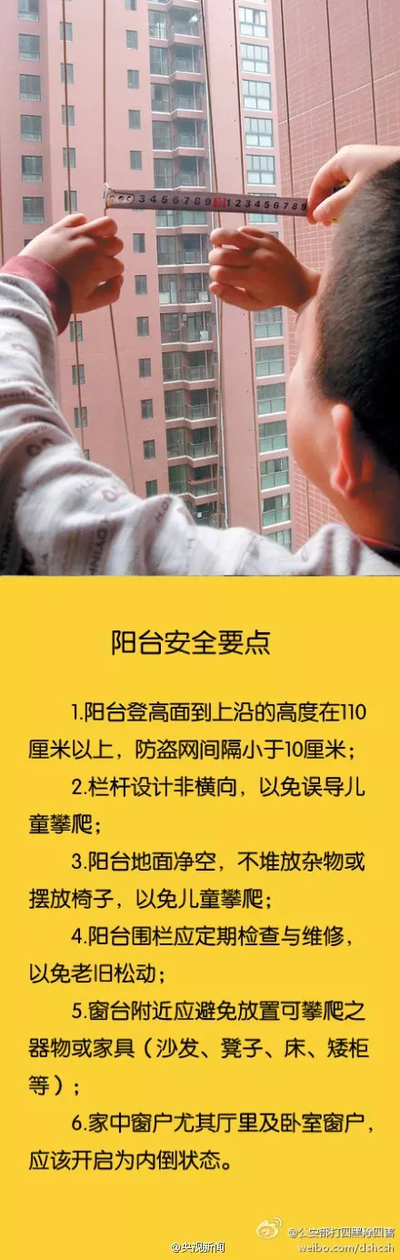 二是家中窗户或阳台附近有桌椅、沙发等攀爬工具;