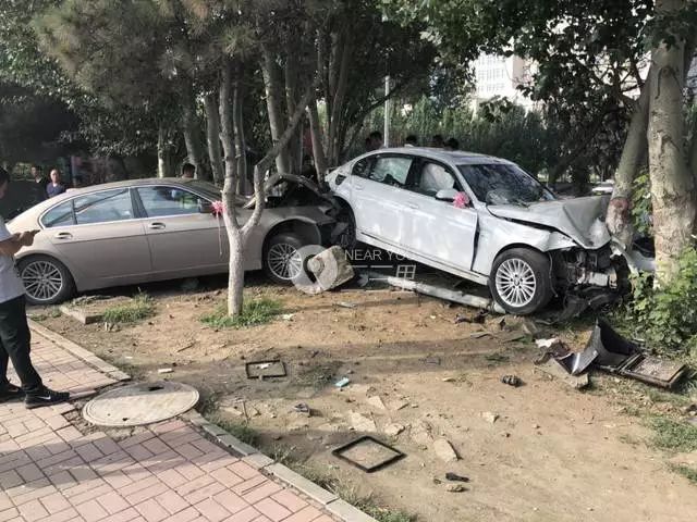 19日早6时30分,沈阳黄河北大街沈师地铁站B口附近,三辆豪华迎亲车首尾相撞,十米长护栏被撞碎,车损较大,一人受伤。三辆车分别是保时捷卡宴、宝马745、和一辆宝马5系,三车总价在300万以上。