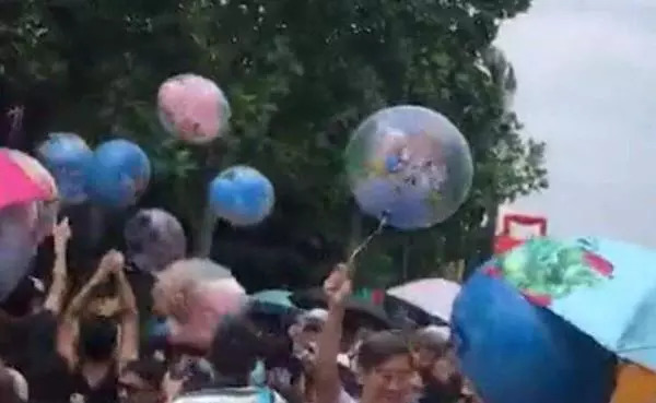 视频中,有位身着白色短袖的男子在拿到气球后面带笑容地从人群中走出,引起了网友指责。东方网记者了解到,这名男子在安保人员的提示下也很快将气球归还。
