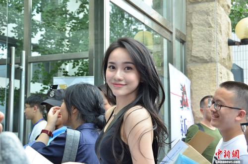 “明星新生”李兰迪现身中戏校园。中新网记者 宋宇晟 摄