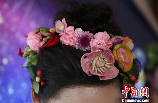头饰也是利用辣椒、蘑菇等精心制作而成。 刘占昆 摄
