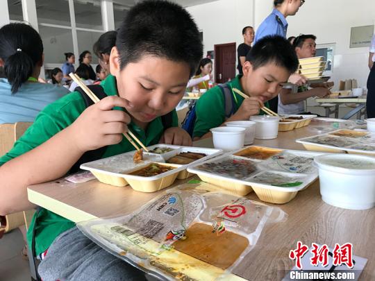 参观间隙,学生在成都客运段“川之味”动车配餐中心参观品尝动车食品制作流程及成品。 吴正琪 摄