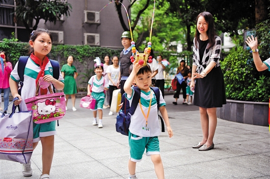 开学首日,体育东路小学东校区迎来了新生 羊城晚报记者 邓勃 摄
