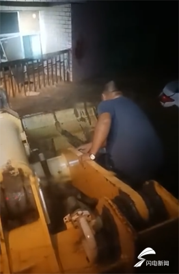 就在吴经理等被困人员一筹莫展时,在一墙之隔的地方,梁家官庄村的村支书赵京祥根据镇上的统一部署,早已将自家的铲车开到了厂子外待命。“当时,路面上的水将近有2米深。我想到厂里面救人,可当把铲车开到门口的时候,试了几次都进不去。因为厂区的积水比外面的水高了1米多,足足有3米深。如果贸然驶入的话,车子肯定回不来,而且人也救不出来。”赵京祥告诉记者,“为了救人,我向上级提了一个建议,将厂子的外墙推倒,这样就能降低厂区内的积水水位,为解救被困人员创造有利条件。”