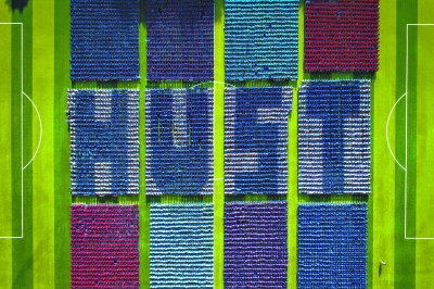 4日,华中科大中心运动场,7042名新生身着文化衫摆出一个巨大的“hust”(华中科技大学英文首字母缩写)长江日报记者任勇 通讯员王潇潇 高翔摄