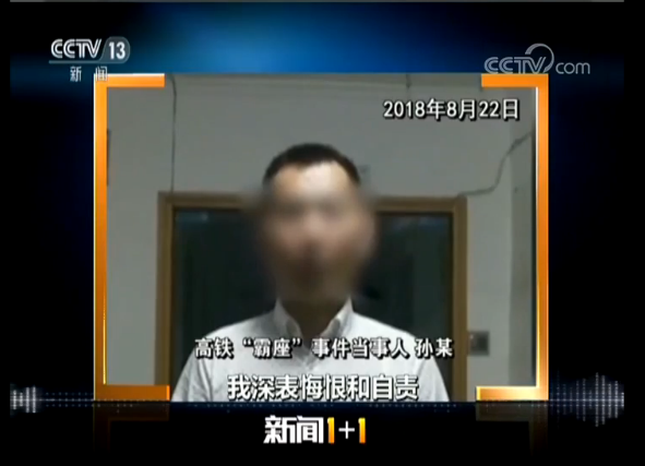 高铁霸占座位事件当事人 孙某:对于网上曝光本人乘坐高铁霸占座位这一事件,我深表悔恨和自责。在此,我向当事人和全国人民表示诚挚道歉。