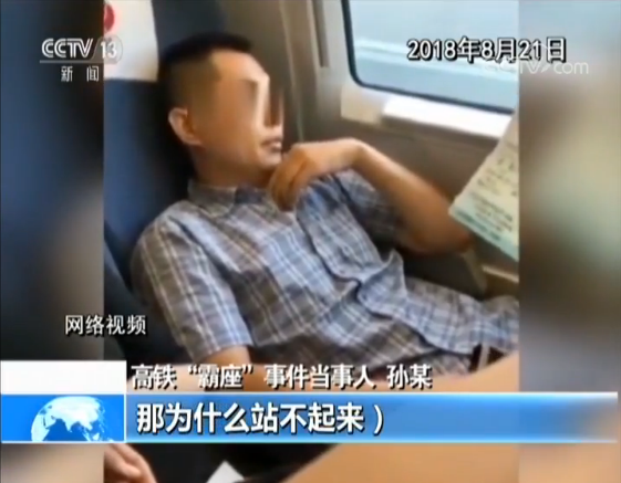 2018年9月4日 新闻:在今年的8月21日,因为在高铁列车上霸占一位女士的座位,被网友戏称为“高铁霸座男”的孙赫被列入了严重失信人黑名单。