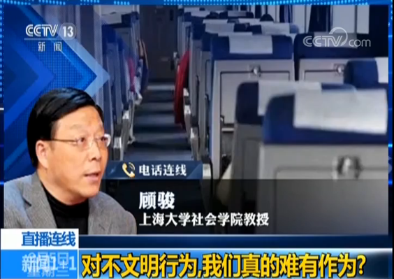 董倩:像短片里面发生的这些事情我相信很多人在自己的生活里面也都遇见过,遇见过之后我们应该怎么办?继续连线顾教授,顾教授,刚才我们在短片里面举过的种种例子,不管是在火车上还是在飞机上还是在地铁上,当相关乘务人员进行提醒但是无效之后,这事是不是就没办法解决了?是不是就没有人能够制约他们了?另外乘务人员在这件事情上是不是应该担起相应的责任来?