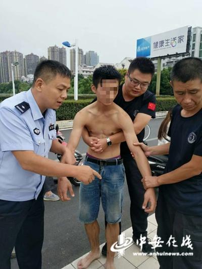中安在线、中安新闻客户端讯9月6日,在合肥市长江东路与沿河西路交口的大桥上,一名年轻男子站在桥的栏杆上,准备跳河轻生,围观群众立即报警求助,民警赶到后趁其不备,将其救下。