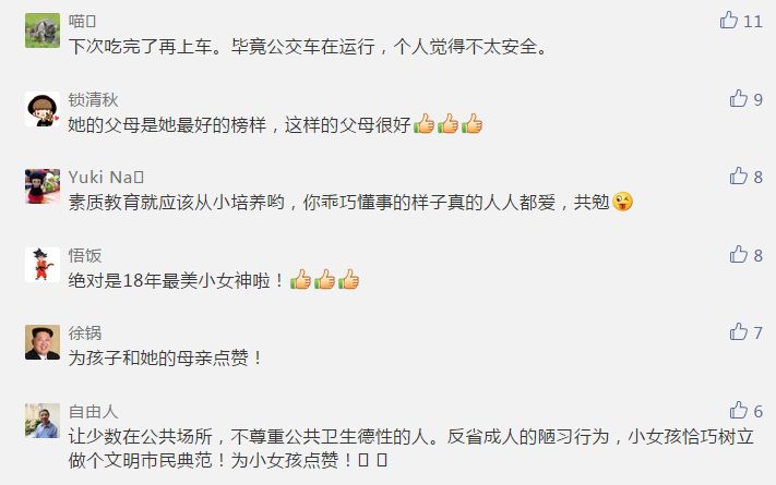 没想到一传十,十传百,不但朋友圈纷纷转发这张照片,照片还上了微博。网友们纷纷赞扬女孩的母亲教育得当,为女孩和她妈妈点赞。