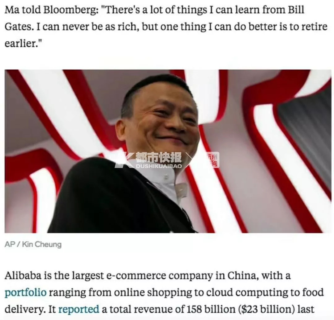 9月5日,马云在接受彭博社采访时谈到过自己的“退休”问题。