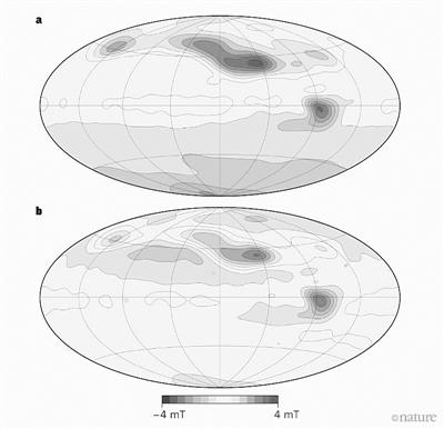 根据“朱诺”号绕木星前9圈中的8圈所观测到的磁场数据,研究人员得到了一个新的木星磁场参照模型。该模型首次描述了木星外部的磁场,这对于理解木星磁层中的过程具有重要意义。但是,目前尚未有描述木星内部磁场的图。而只有这样的磁场图,才能有助于理解木星内部磁场的产生。