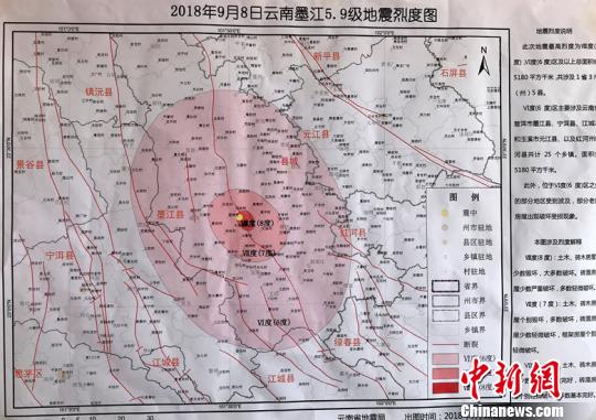 图为《云南墨江5.9级地震烈度图》。 杨智强 摄