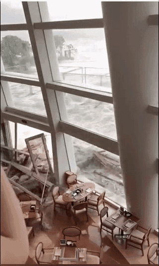 海水冲进大厅。图片来源:央视新闻