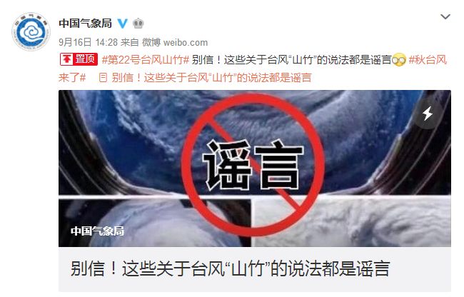 谣言一:美国太空总署拍摄到“世纪最强太平洋恶魔风暴山竹”