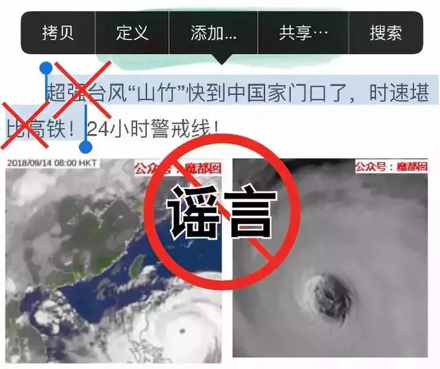 谣言三:网友在飞机上拍到台风“山竹”,就是水果山竹剥开后的样子