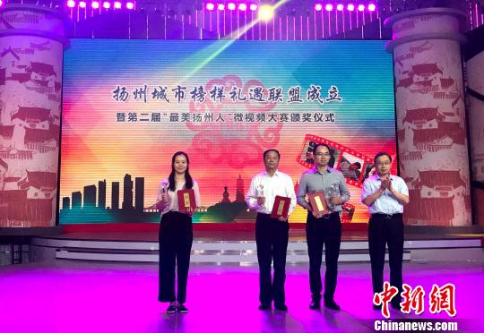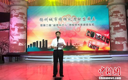 中新网扬州9月18日电 (记者 崔佳明)18日,江苏扬州举行“城市榜样礼遇联盟”成立仪式暨第二届“最美扬州人”微视频大赛颁奖典礼。扬州市委常委、宣传部部长姜龙现场向城市榜样人物致敬,向首批自发参与礼遇联盟的商家致谢。