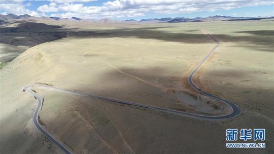 从空中鸟瞰西藏阿里地区札达县公路(9月10日无人机拍摄)。 西藏阿里地区素有“世界屋脊的屋脊”之称,平均海拔4000米以上。这里河流纵横、湖泊密布、土林林立。从空中鸟瞰阿里大地,呈现出一幅幅独特的美景。 新华社记者 普布扎西 摄