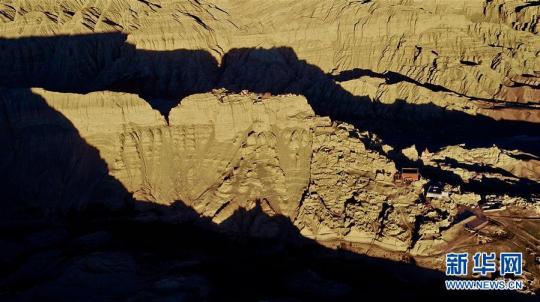 从空中鸟瞰西藏阿里地区东嘎遗址(9月11日无人机拍摄)。 西藏阿里地区素有“世界屋脊的屋脊”之称,平均海拔4000米以上。这里河流纵横、湖泊密布、土林林立。从空中鸟瞰阿里大地,呈现出一幅幅独特的美景。 新华社记者 普布扎西 摄