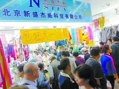 今晚7时,经营了20年的官园商品批发市场将永久性停止营业,西城区域性批发市场也将于今天全部完成疏解。上午9时许,地铁6号线车公庄站出来的人流纷纷涌向官批,进行最后一“淘”。忙着甩货的官批商户们说,“官批迎来了近年来最火的一天!”