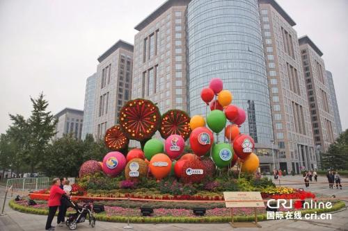 图为9月30日,北京东单大街路口的国庆花坛。摄影:沈湜