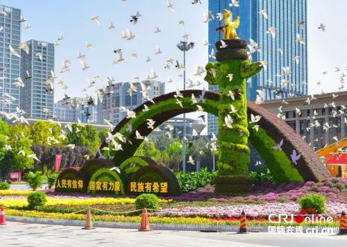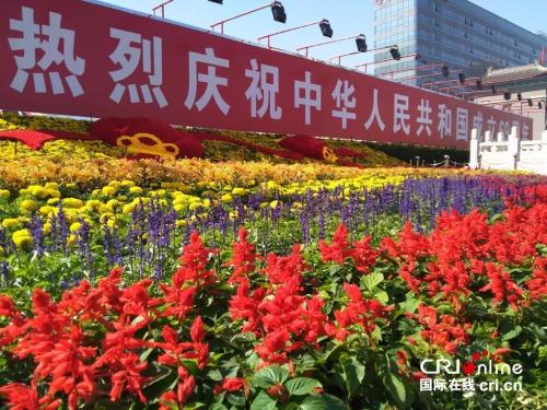 图为山西省太原市五一广场前花团锦簇,节日气氛浓厚。摄影:崔璨