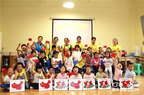 图为重庆市渝北百果路社区开展“童心向国旗·祖国在我心”活动。摄影:王雨