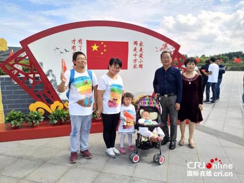 图为江苏省泰州“我与国旗合个影 我为祖国送祝福”活动现场,幸福一家人在国旗下合影。摄影:陈星