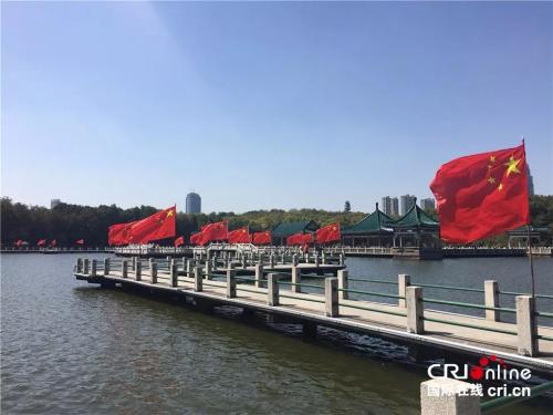 图为湖北省武汉东湖听涛景区的红旗群。摄影:刘英君曌