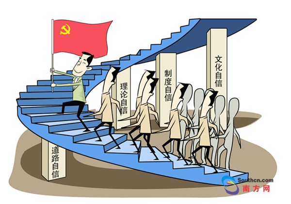 改革开放40年来,党已经用道路自信、理论自信、制度自信、文化自信带领炎黄儿女创造了震撼世界的“中国奇迹”。(漫画:李伟)
