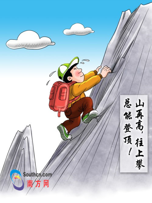 勇攀高峰,做新时代的奋斗者。(漫画:小栗子)